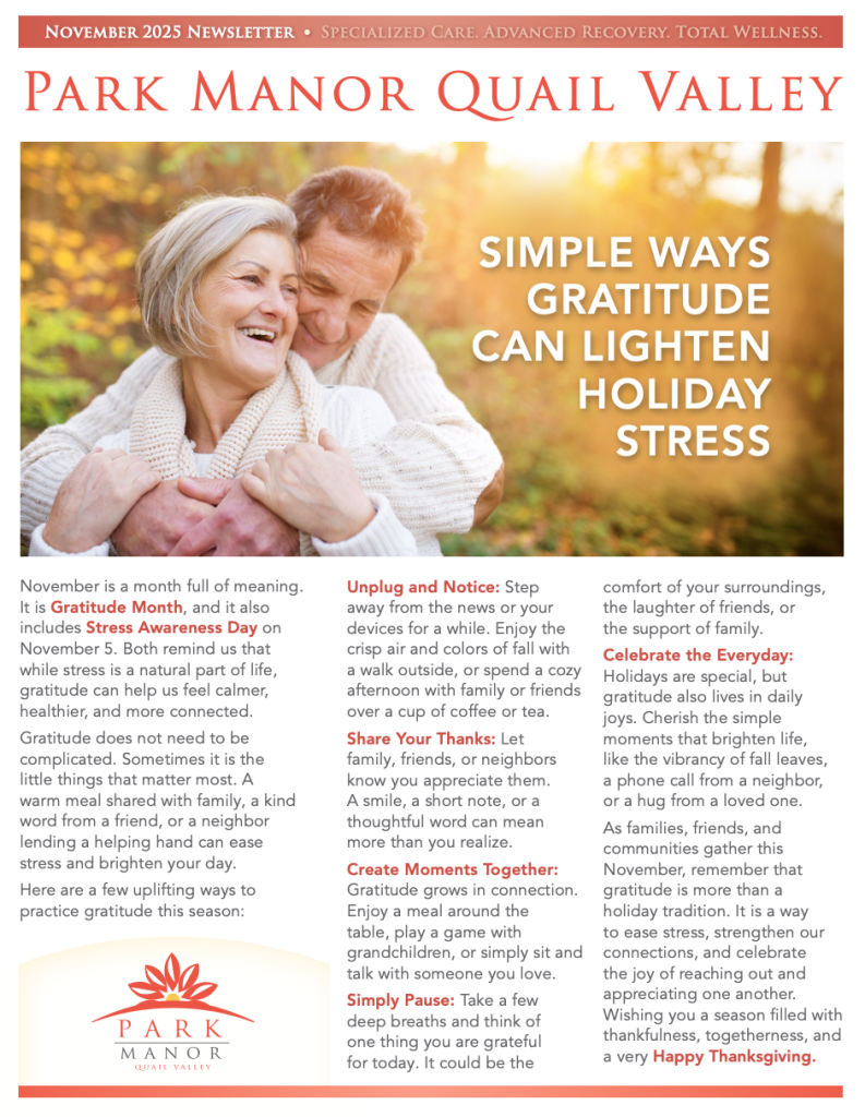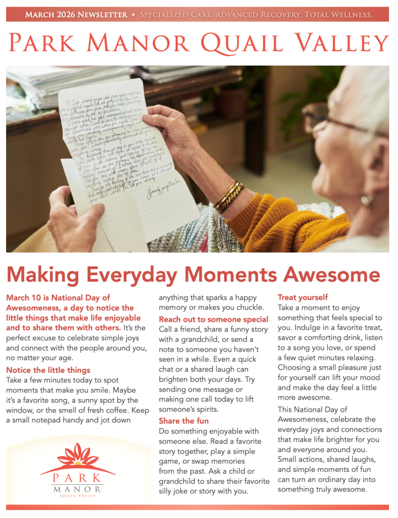 See the latest news and happenings at Park Manor of Quail Valley.